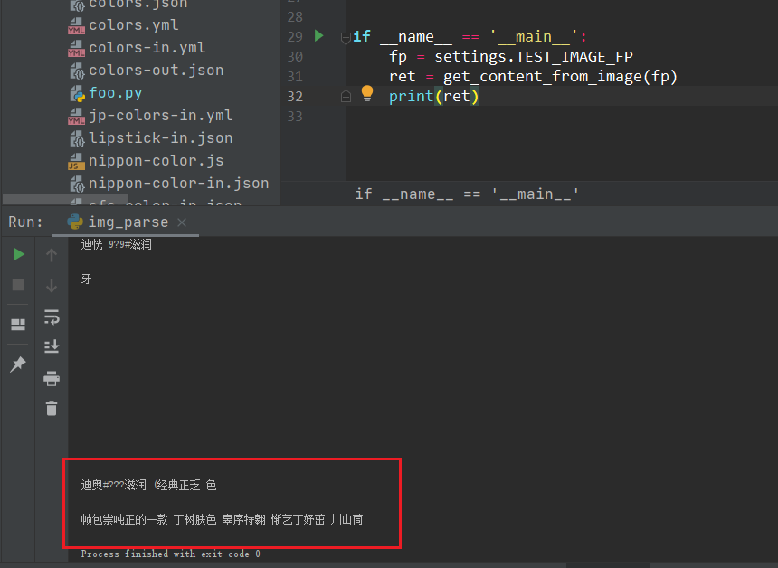 返回结果{'log_id': 8559002589980060578, 'direction': 0, 'words_result_num': 4, 'words_result': [{'words': '迪奥999排滋润', 'probability': {'variance': 0.016349, 'average': 0.931602, 'min': 0.602039}}, {'words': '迪奥#99滋润(经典正红色)', 'probability': {'variance': 7.6e-05, 'average': 0.99548, 'min': 0.969314}}, {'words': '颜色最纯正的一款正红色,不挑肤色,喜庆特别显气质。嘴唇状态不好的小仙女', 'probability': {'variance': 0.00176, 'average': 0.988948, 'min': 0.788893}}, {'words': '要选这款,能让唇妆看起来更美', 'probability': {'variance': 5.8e-05, 'average': 0.996976, 'min': 0.97018}}], 'language': -1}